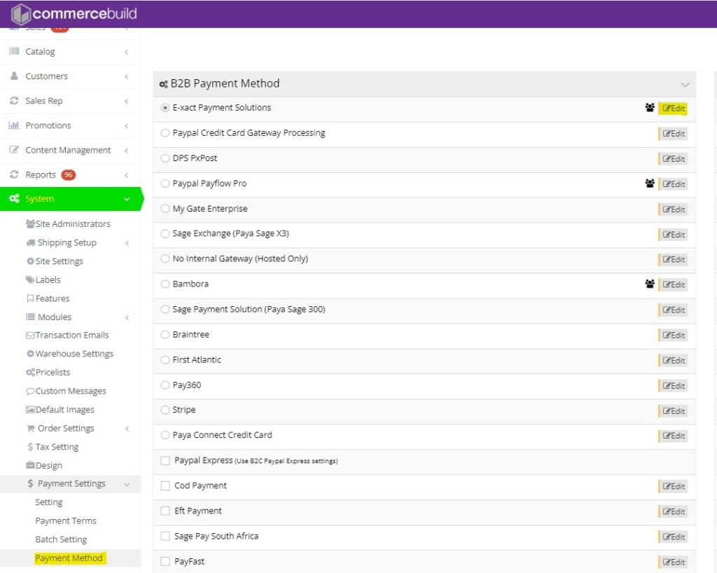 - Click on edit next to the payment gateway that is being used on the webstore, edit the terminal (edit each terminal if multiple terminal are being used)