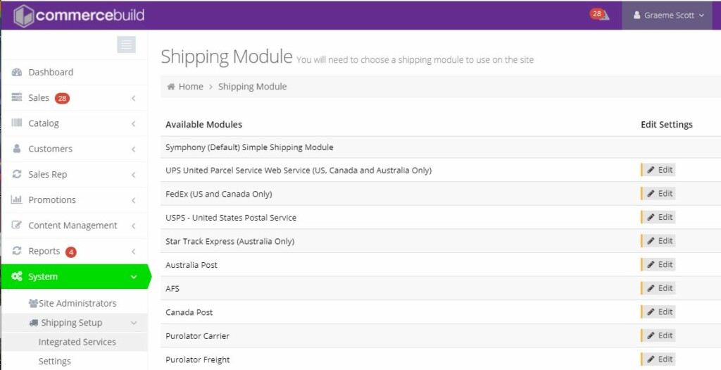 Back in the commercebuild's panel, you will need to fill out the address to match the address Purolator has as your warehouse (which may be different from your billing address), and which services you want to show to your customers.