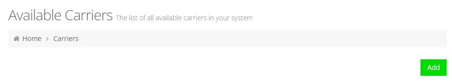 For this example, we know that we are going to create a ground shipping option for clients in the USA, excluding Alaska and Hawaii. We are also not going to use a shipping integration, and we have a good idea about the charges that will need to be applied. First, navigate to System > Shipping Setup > Carriers in the admin panel. Click on the Add button.