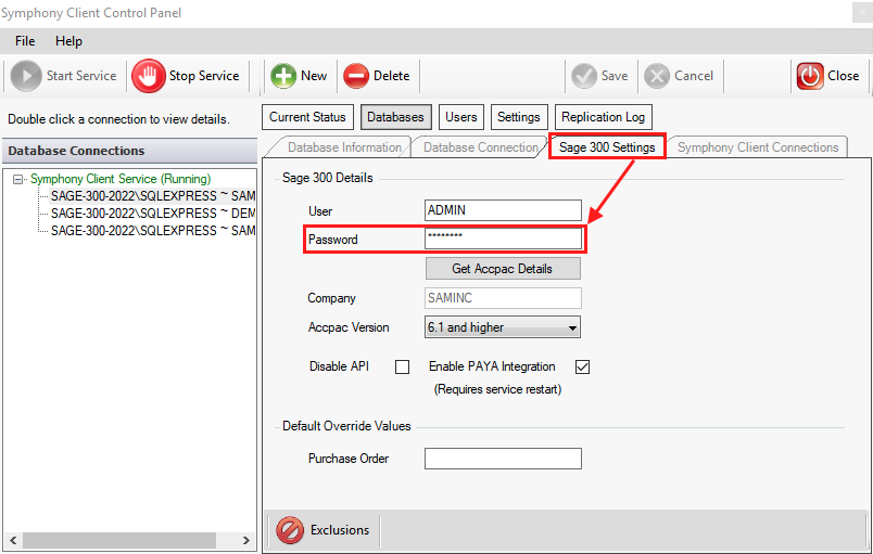 On the ERP server, someone will need to update those details in the Symphony Client. Once updated and saved, stop and start the service.