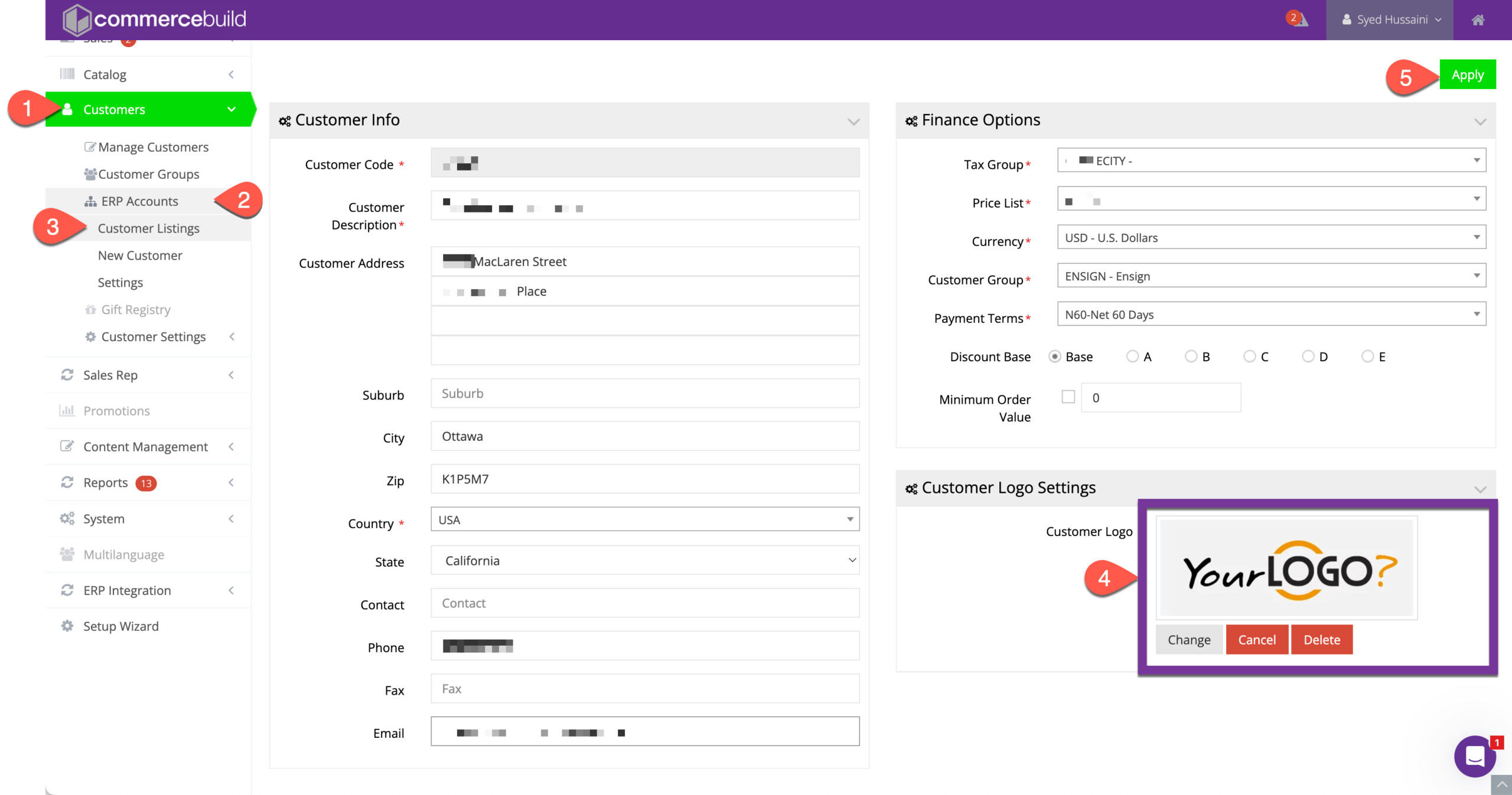 - Locate the customer account where the logo needs to be added or updated
