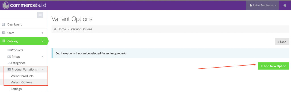- Name: Title of the variant option. It will be displayed on the frontend.