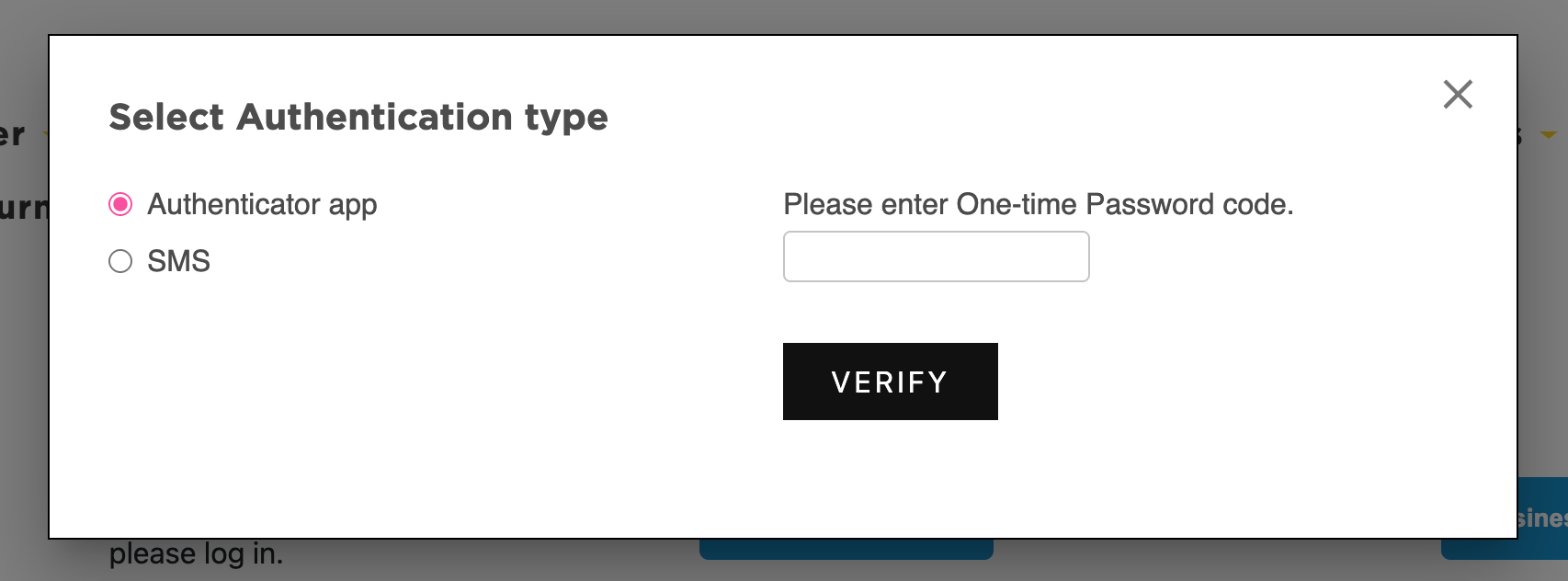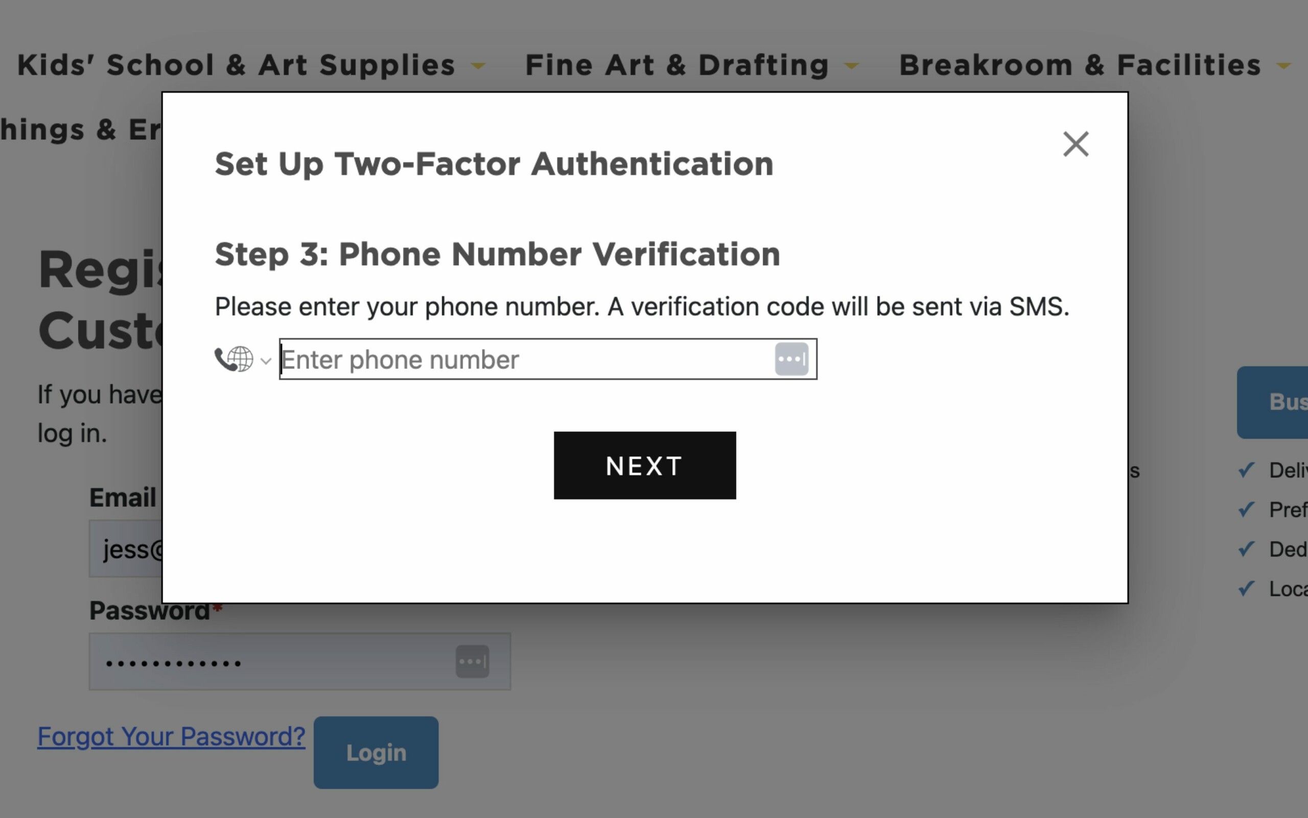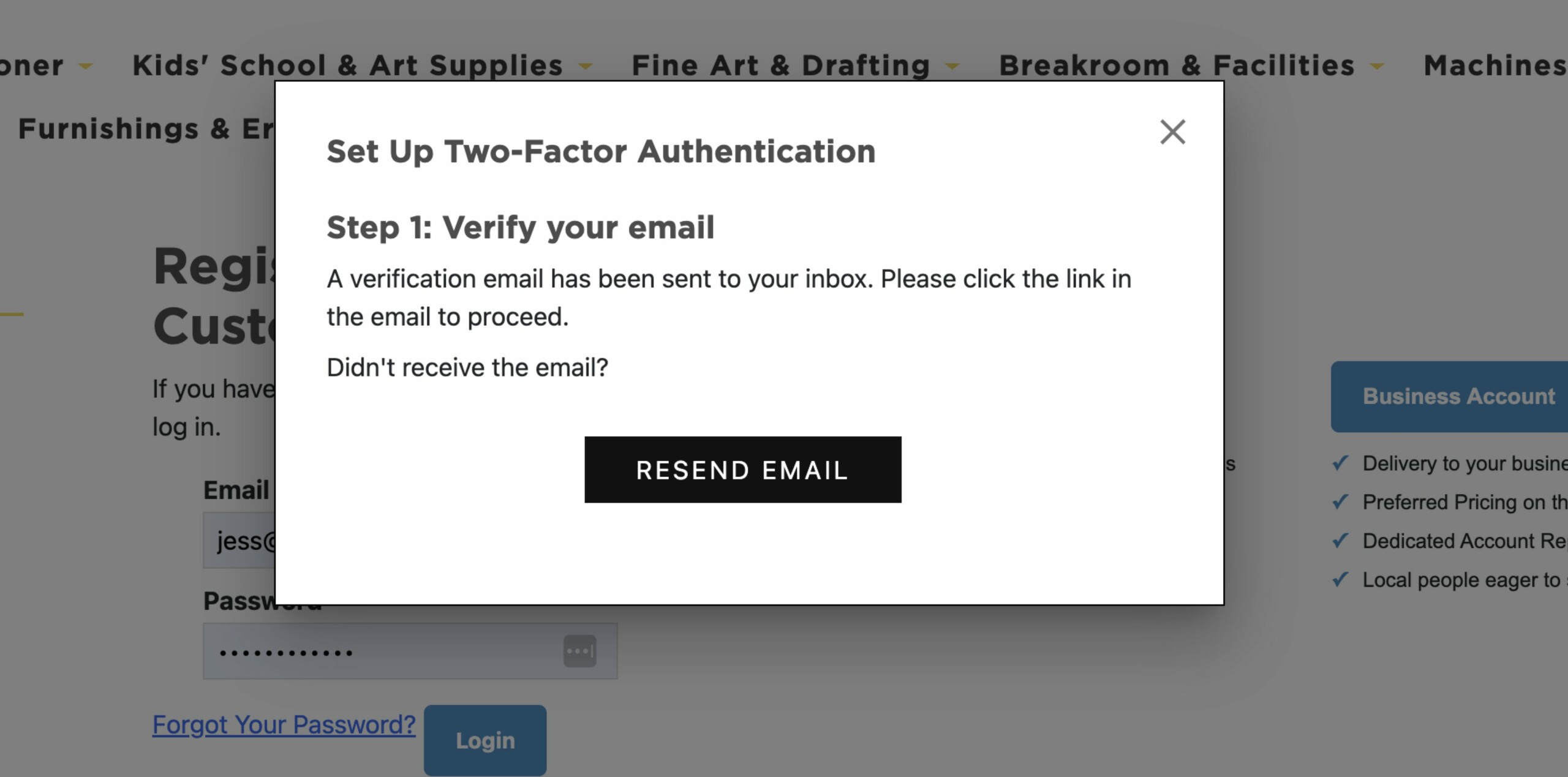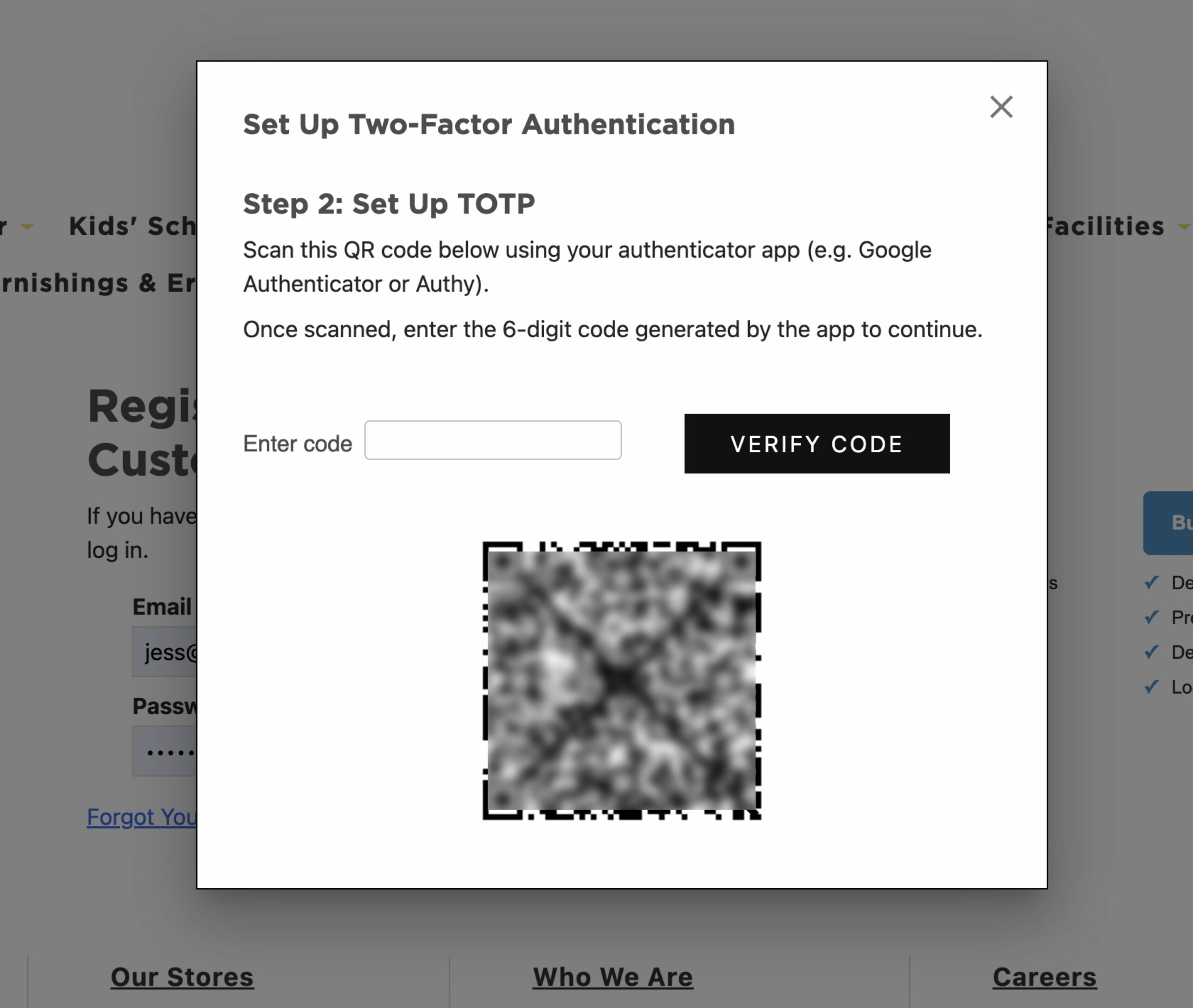 Once you log in to your webstore account, you’ll see a popup prompting you to “Set Up Two-Factor Authentication.”