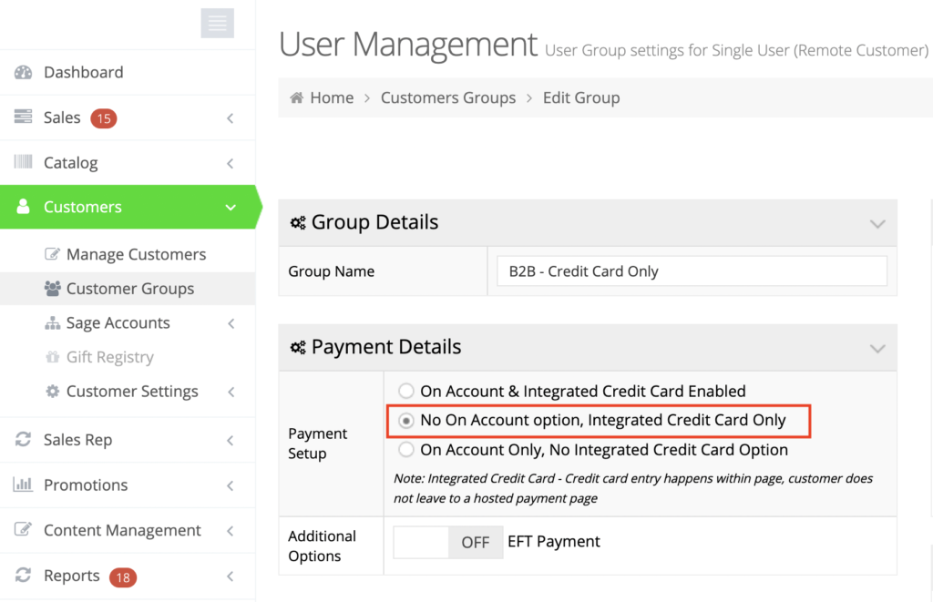 You have set up a customer group with the option "No On Account option, Integrated Credit Card Only" selected from Payment Setup. However, the "On Account" option still appears on the Payment Step in the Checkout process, as evidenced by the below screens.