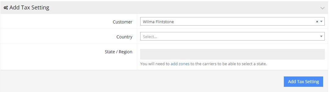 Click on Add Tax Setting. You'll see you've now entered a record for the province of Alberta. Any time a B2C or guest user checks out with a ship-to address in the province of Alberta, the commercebuild platform knows where to look for instructions on how to charge tax.