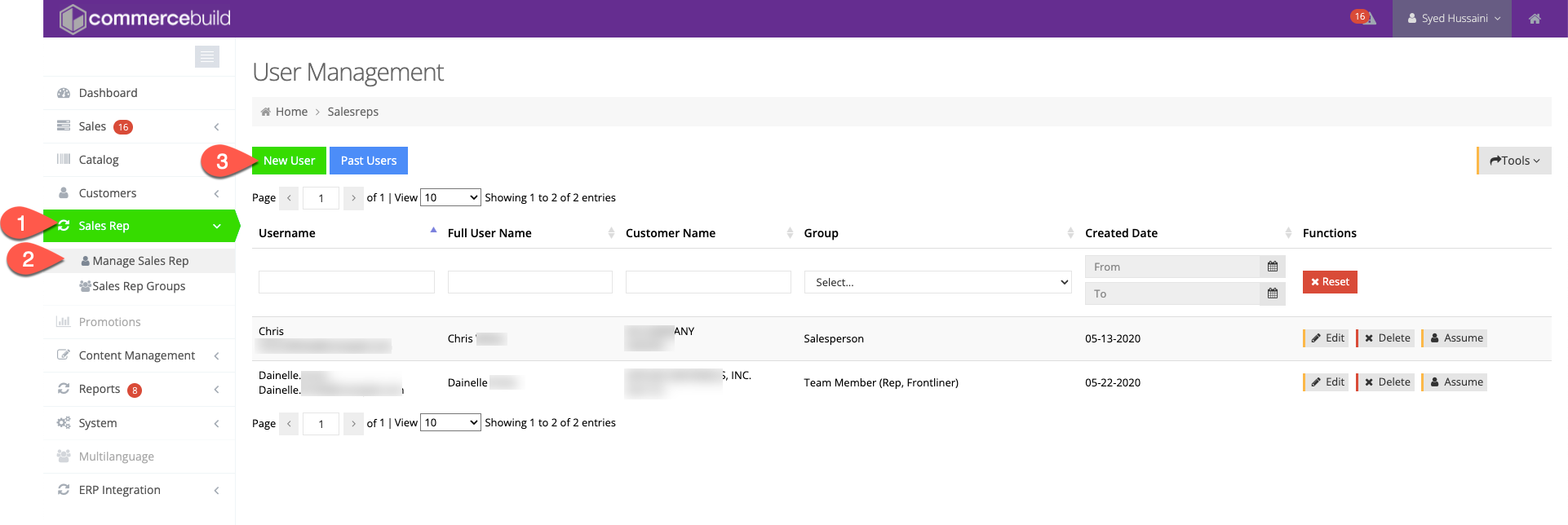 - Go to Sales Reps: Supervisors are created as a type of Sales Rep, so start by creating a new user under the Sales Reps section.