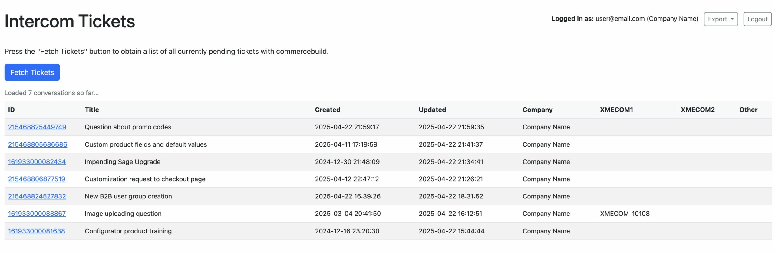 If you have any questions about using the Tickets Portal or need assistance, please contact support@commercebuild.com.