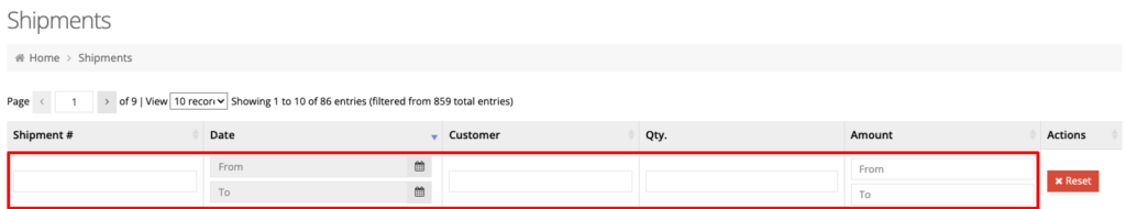 You may also enter/select a search criteria to search in that column. Clicking