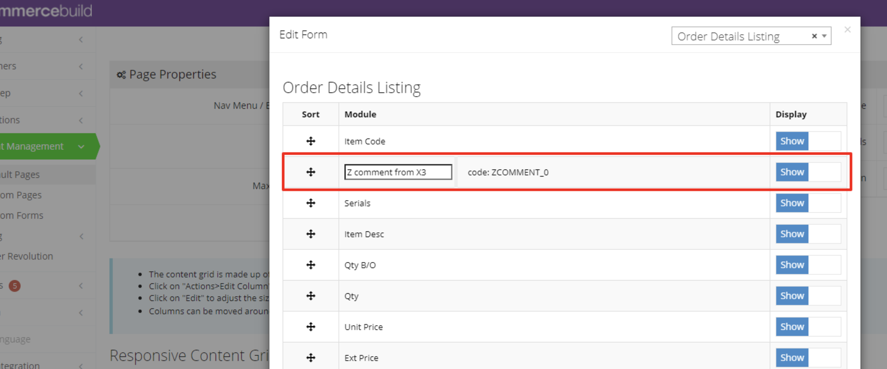 Custom fields associated with an item in X3 can now be mapped to the web store Order Details Listing.