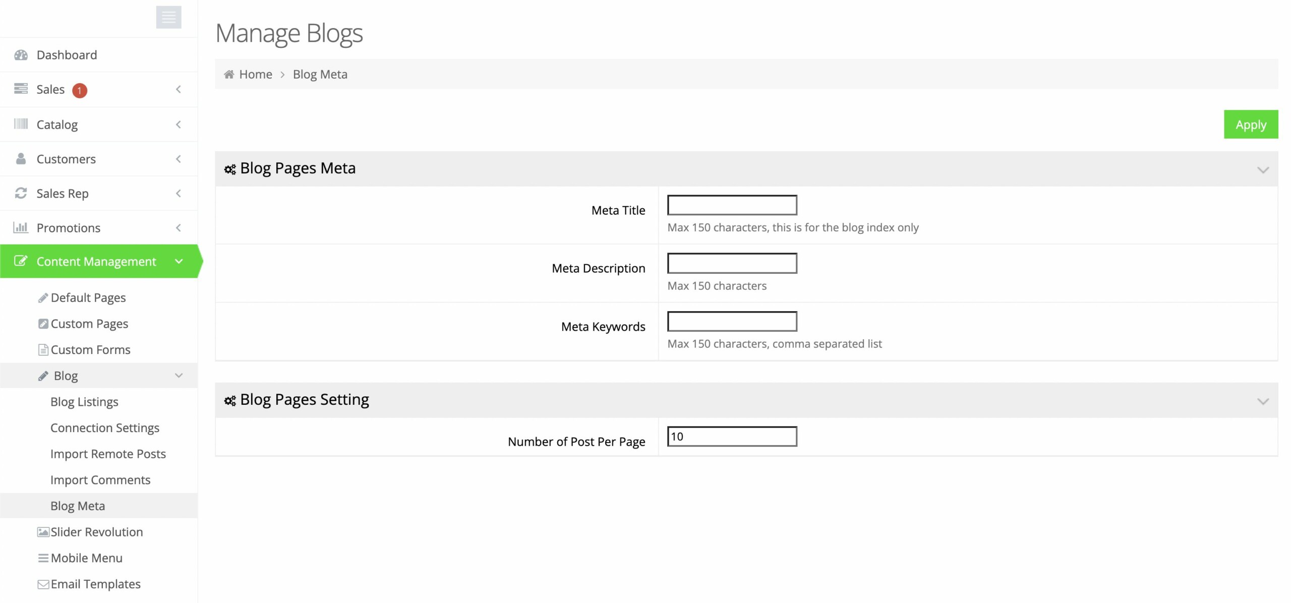Control the number of blog articles seen per page by going to "Content Management → Blog → Blog Meta". Internal ticket UN-1715.