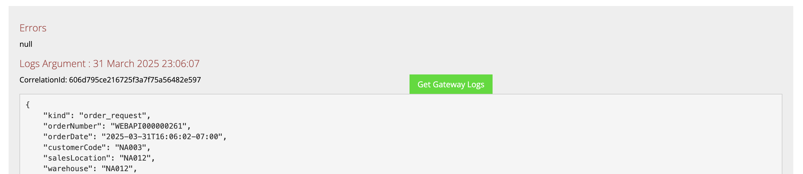 For sites using the Order API, admins can now retrieve the full Order API logs in the web store for each order. This is done by pressing the green Get Gateway logs button.